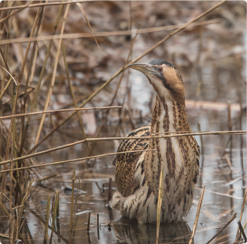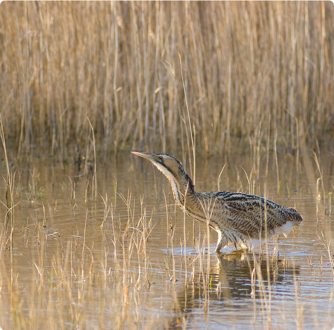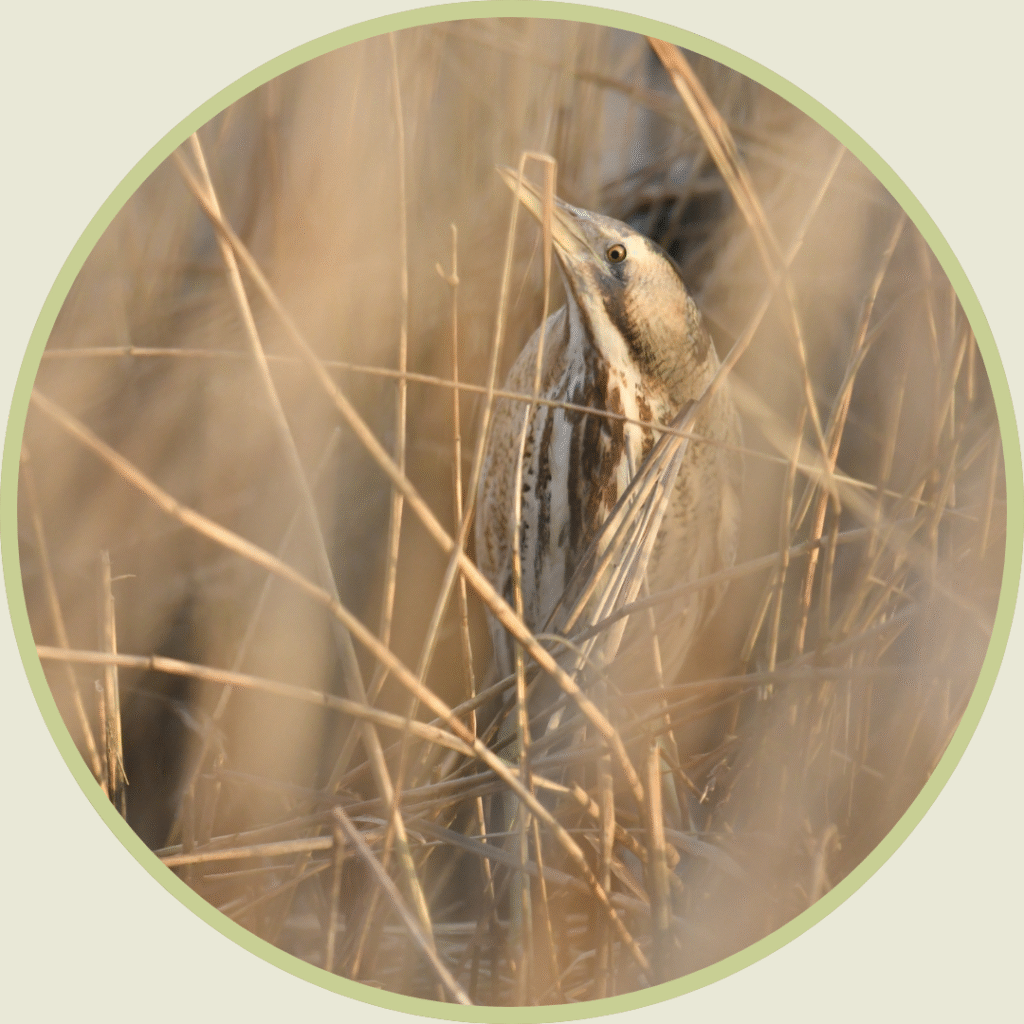 Espèce emblématique des zones humides, le Butor étoilé affectionne particulièrement les grandes surfaces de roselières. Les parties les plus hautes et denses lui fournissent un abri pour construire son nid.