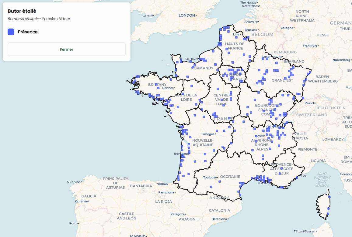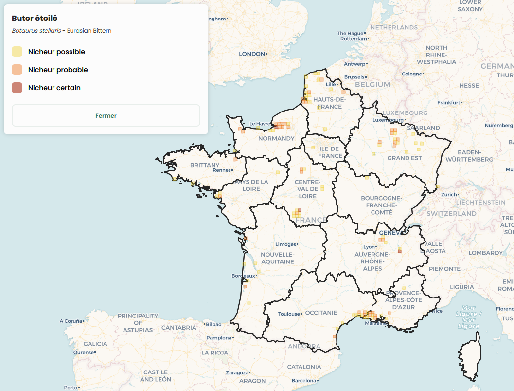 Le Butor étoilé est une espèce menacée en France. Si la répartition de la population nicheuse s’étend sur 7 régions, les effectifs sont très faibles sur les sites de reproduction.